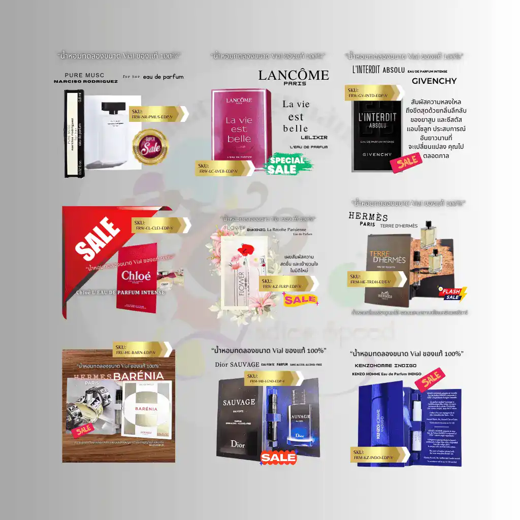 Set น้ำหอมทดลอง Vial ของแท้ 100% ให้คุณเลือกจัดเซ็ตกลิ่นโปรด หรือให้แอดมิน Ladies Speed จัดเซ็ตแนะนำ
