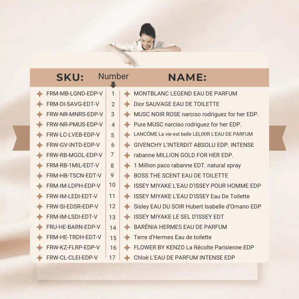 มิกซ์สุ่มคละกลิ่นฮิต, สายคุณผู้ชาย, สายสดชื่นคลีน ๆ, สายหรูแพงเคาน์เตอร์แบรนด์, สายหวานฟรุ้ตตี้