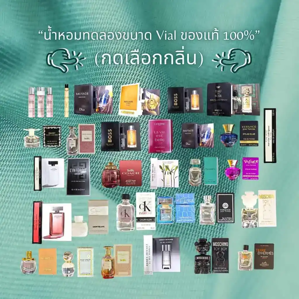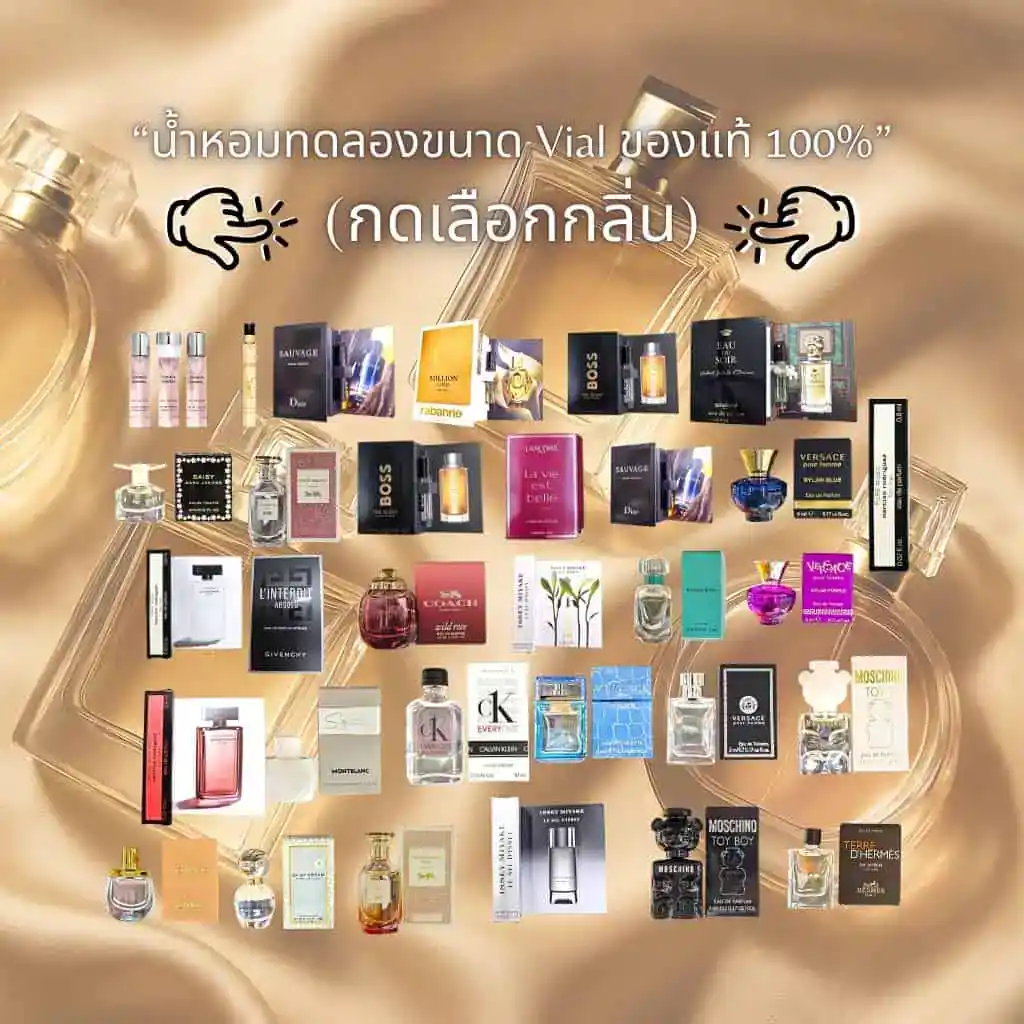 เราได้คัดสรรน้ำหอมเคาน์เตอร์แบรนด์แท้ 100% ในรูปแบบขวดทดลอง (Vial) ขนาดเล็กกะทัดรัด ให้คุณเลือกกลิ่นได้เองตามใจ จากหลากหลายแบรนด์ดังและกลิ่นยอดฮิต
